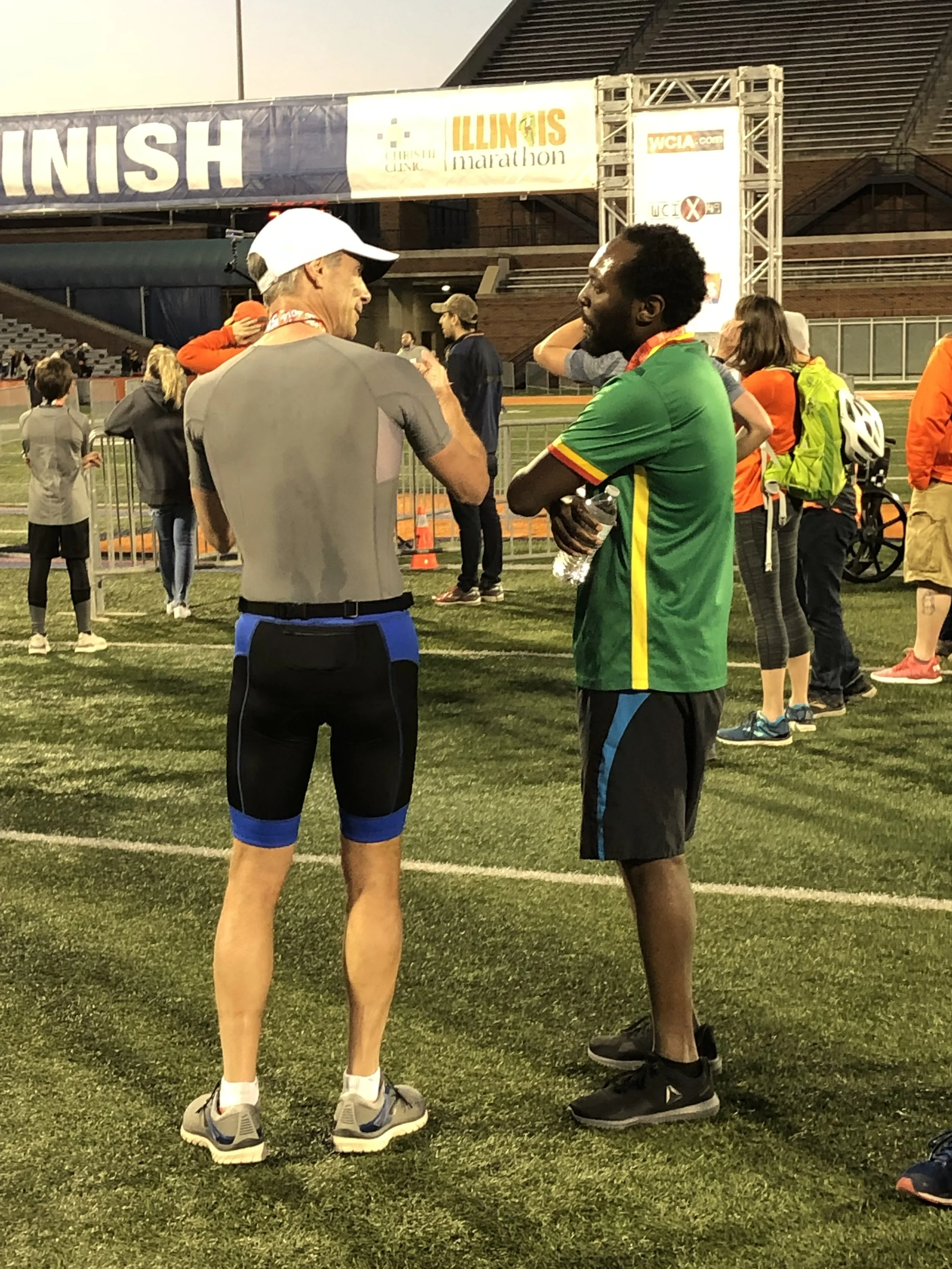 Here, Martin (left) and I recap the race, with him explaining how he beat me. I listen carefully and take notes, knowing this would be the last time Martin ever beat me in a race. I have learned a lot about endurance sports from him!