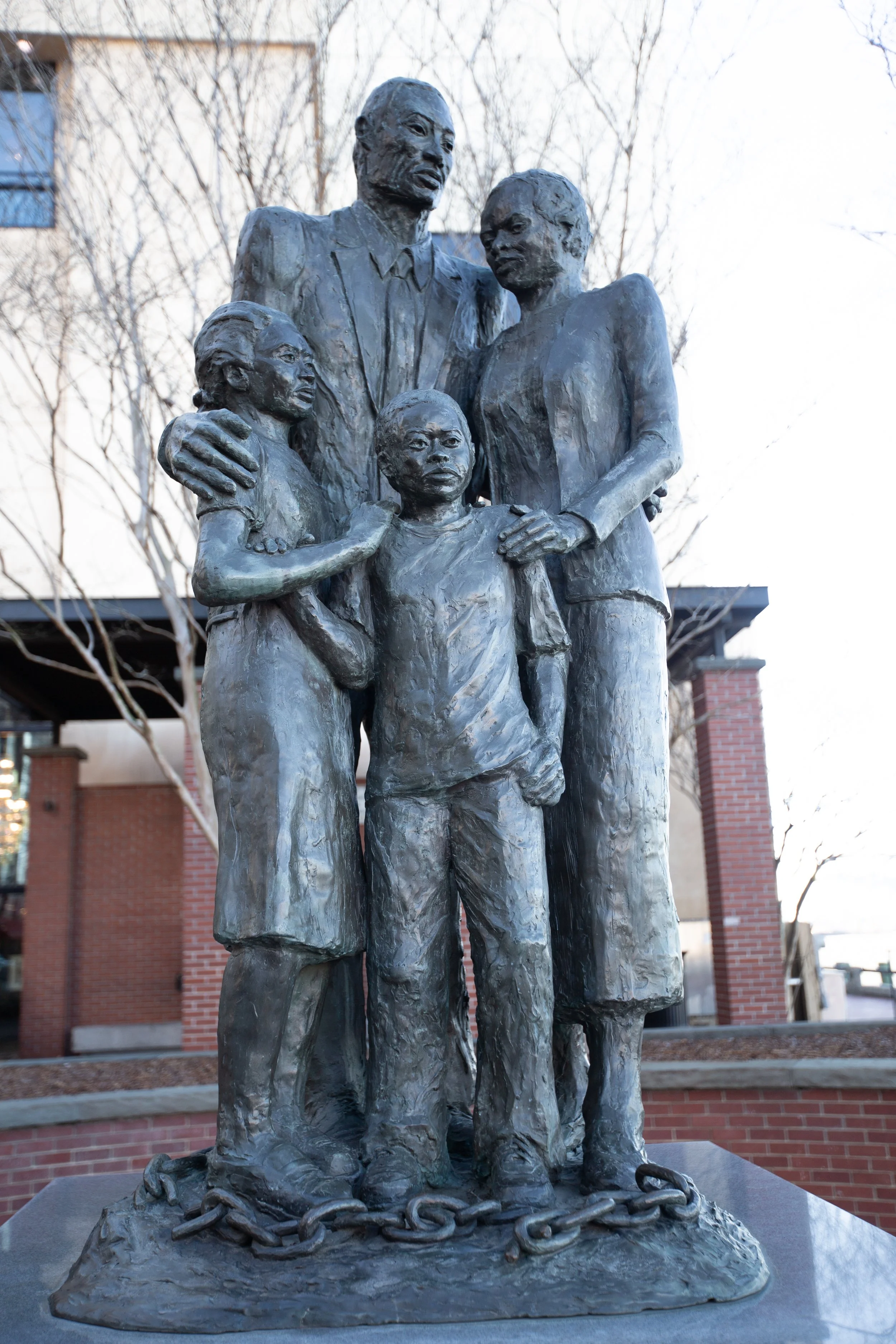 The monument captures a family of four in the staggering, silent moment of their freedom. They stand poised between a suffocating past and an unwritten future. On the statue is Maya Angelou’s inscription: