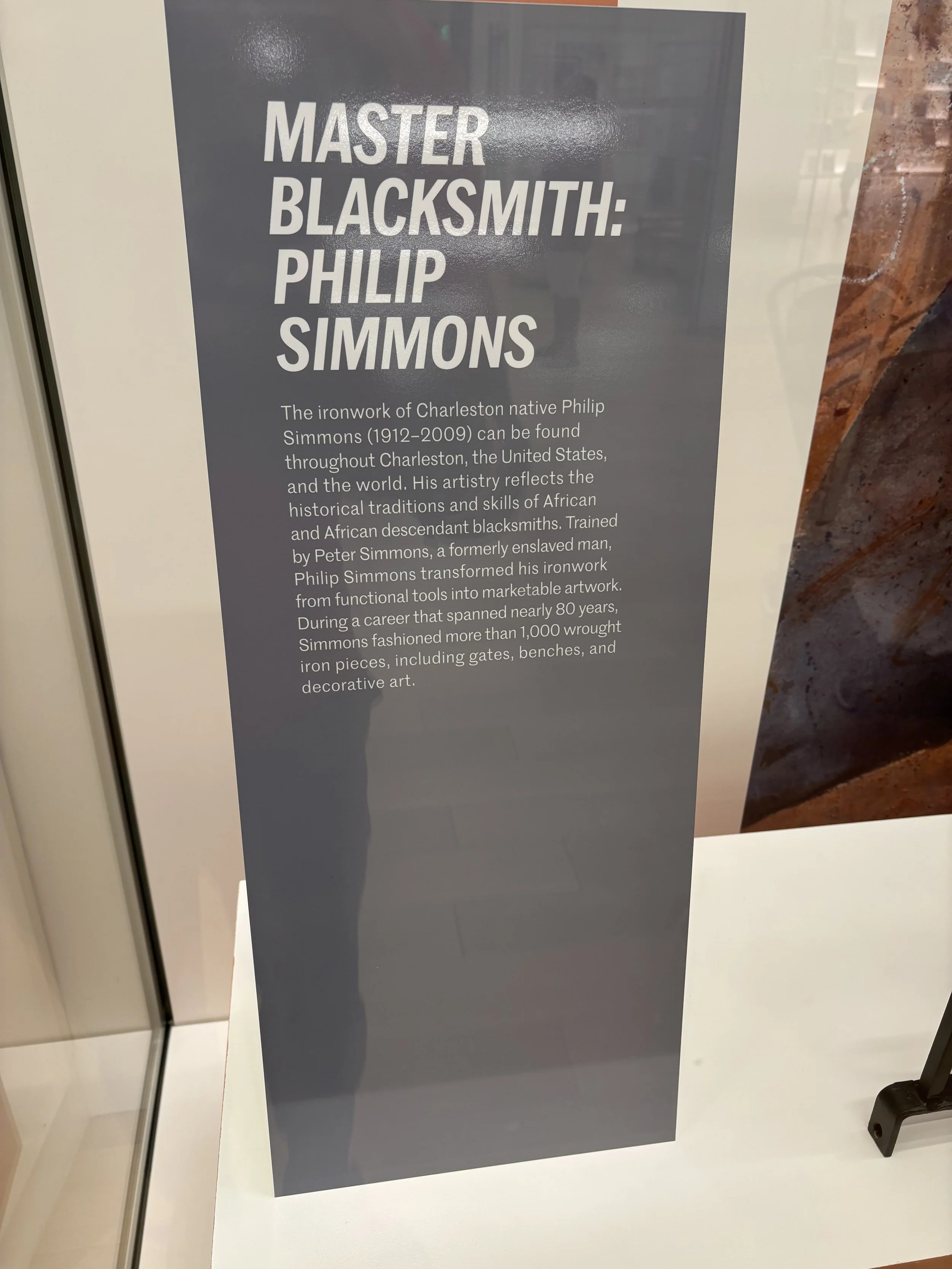 The legacy of Philip Simmons in Charleston lives on through ironwork that quietly shapes the city’s visual identity and cultural memory. Born into poverty and largely self-taught, Simmons transformed wrought iron from a functional trade into an expressive art form, crafting gates, fences, balconies, and sculptures that balance strength with elegance. His work draws from African American traditions, Lowcountry history, and personal imagination, turning everyday materials into symbols of resilience and creativity. Beyond the physical pieces scattered throughout Charleston, Simmons’s true legacy is also educational and communal. He mentored younger generations, shared his craft openly, and ensured that Black artistry and labor were recognized as central to the city’s heritage, not a footnote to it.