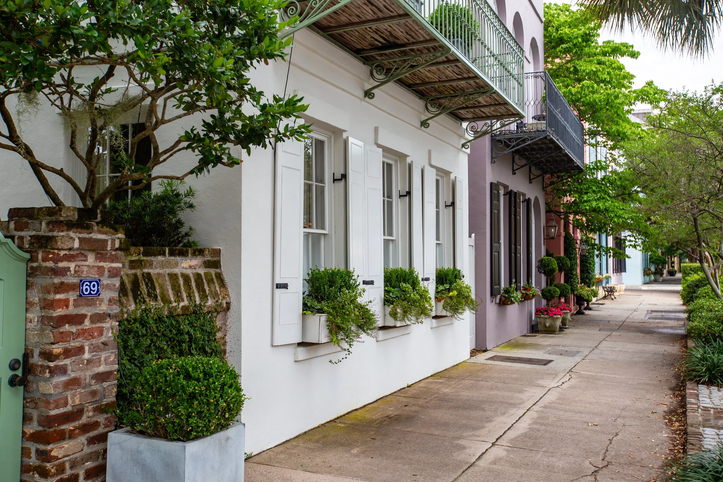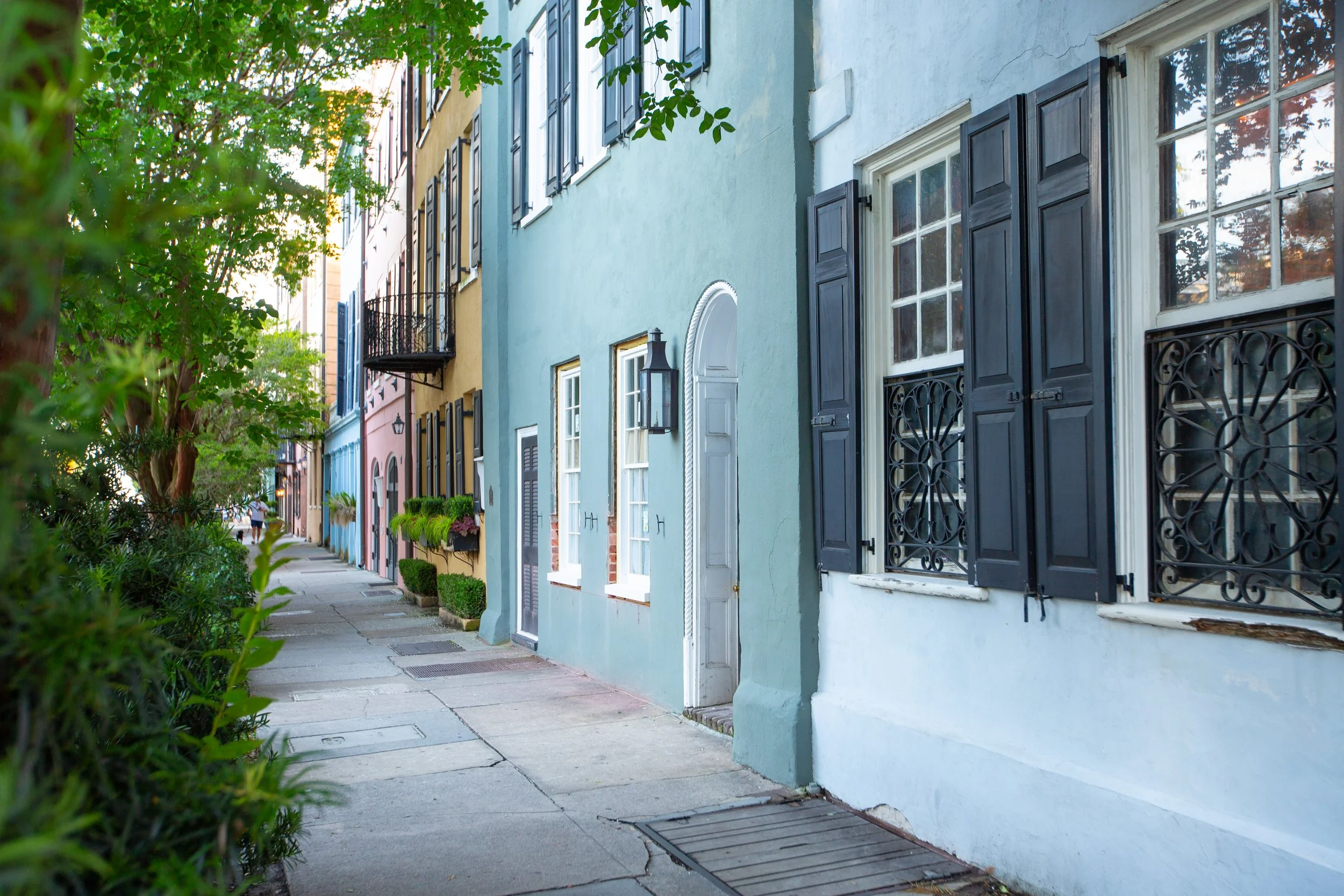 Rainbow Row is a celebrated line of thirteen pastel-colored, Georgian-style houses at 79–107 East Bay Street in Charleston’s historic district. Among the city’s most photographed landmarks, it is admired for its soft hues and layered history. Built between the 1740s and 1845, these buildings once functioned as merchant shops at street level, with living quarters above, facing what was then a busy and commercial waterfront.